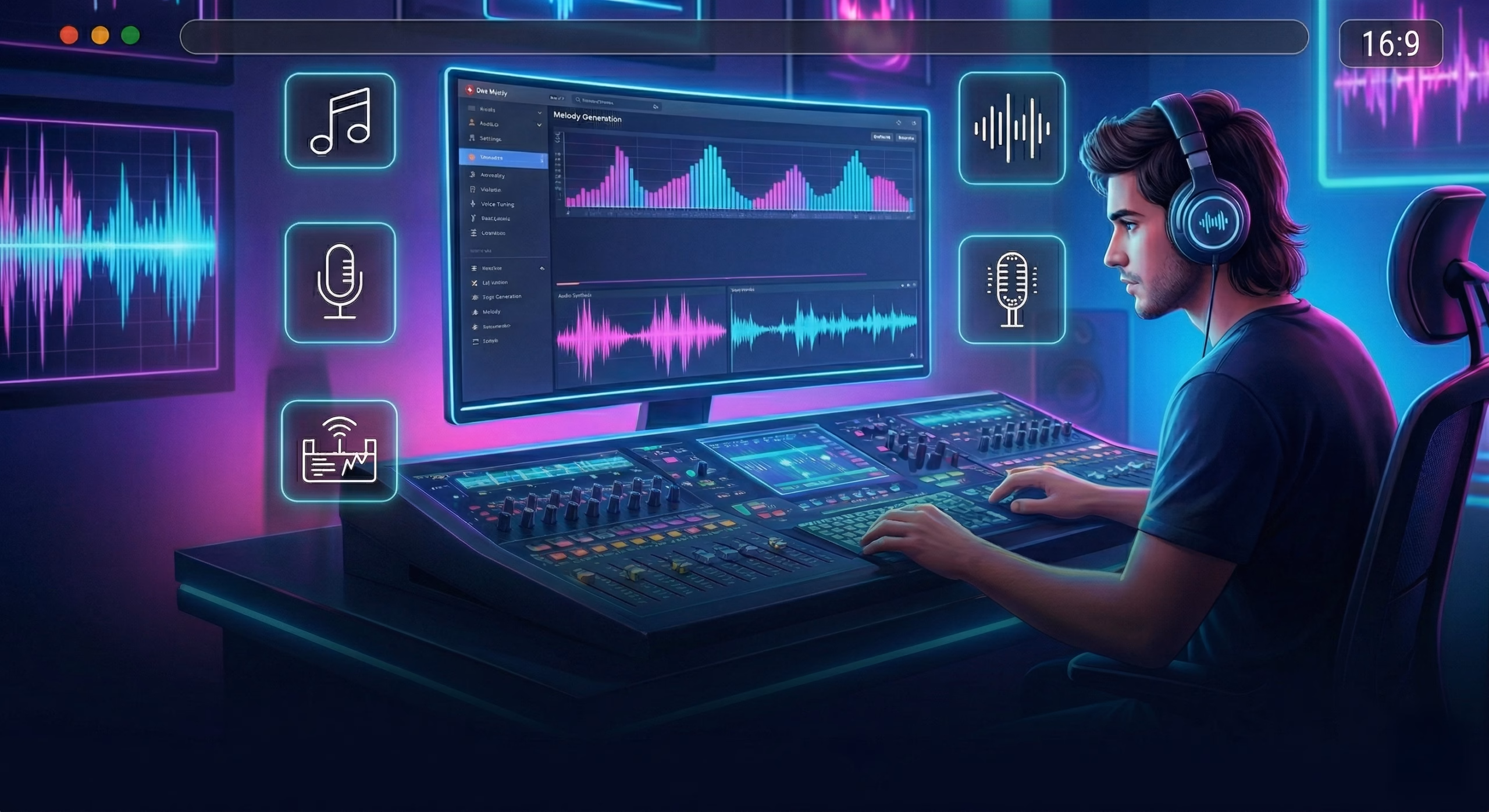 🎵 الموسيقى لم تعد حكراً على الاستوديوهات والملحنين الكبار؛ إحساسك هو الآلة الآن. انضم لثورة الإنتاج الموسيقي بالذكاء الاصطناعي وحوّل مشاعرك إلى ألحان تسكن القلوب. 🎶 اختصر سنوات من تعقيدات التلحين والتوزيع في ساعات من الإبداع. امتلك أدوات المستقبل في صناعة الأغاني والخلفيات الموسيقية، واجعل الذكاء الاصطناعي عازفك الأول نحو التميز.